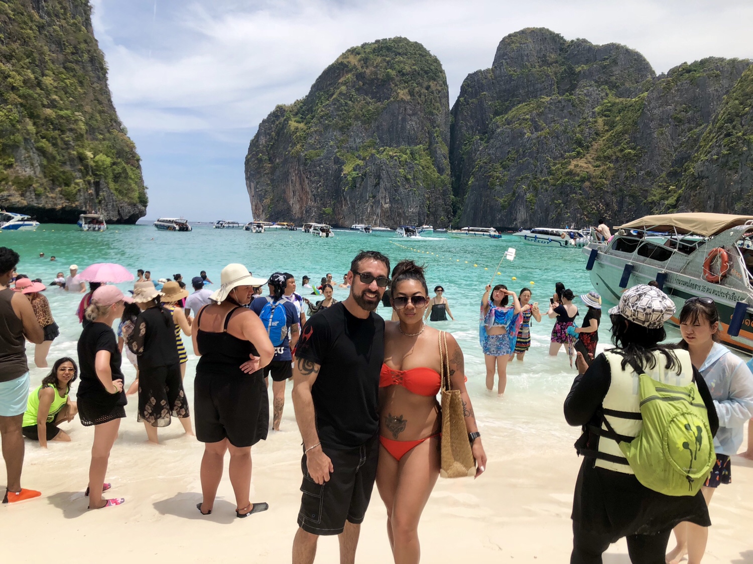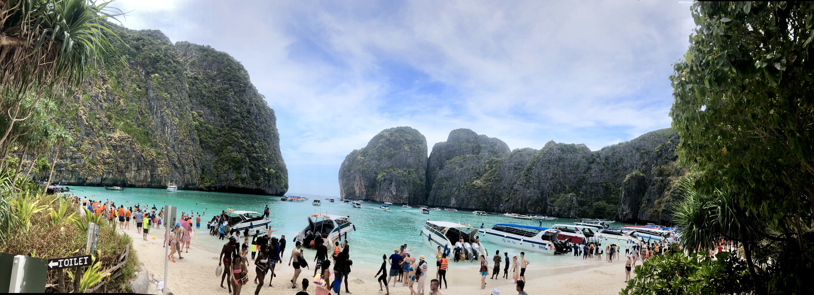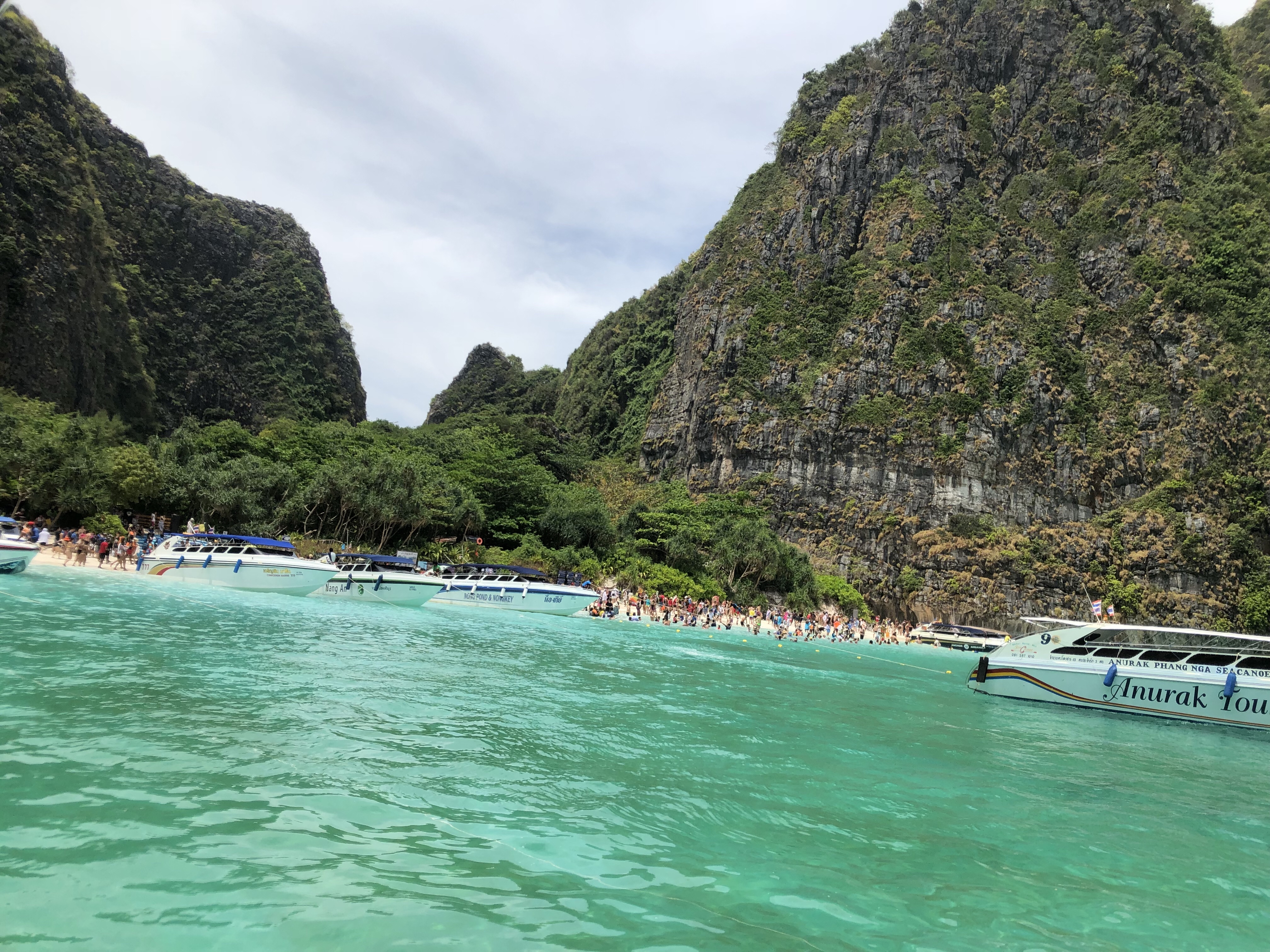 Finally we were off to a 5 minute ride to Maya Bay where we parked along side what seemed like 50 large speed boats. OMG this was a beautiful and breathtaking place to be, but sooooo many people-another clear fire hazard on the beach. We made our way to get some Magnum ice cream bars and embraced the scenery. We then walked back towards the beach where it cleared out significantly, like more than half the people were gone! Whew!! I am really glad we were able to make it before they closed the beach! A friend of mine shared an article from the Bangkok Post about the closing.