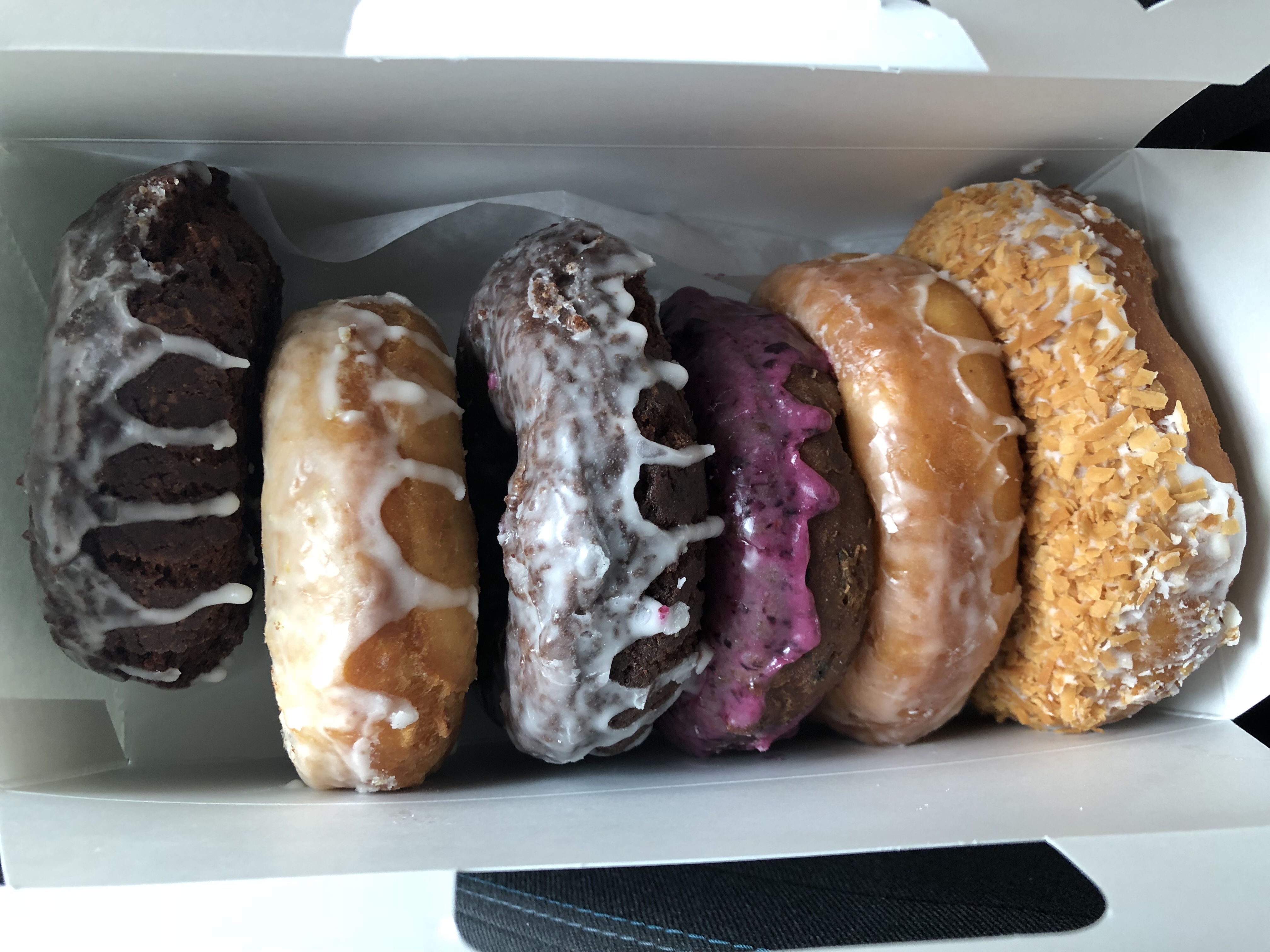 I only had half the toasted coconut and half the dark chocolate and stopped, or I may have eaten the rest if it wasn’t too much sugar for me. HOLY SHEET were these good! I took a bite of Kayleen’s vanilla which was out of this world, and my sister’s lemon which was just as good! There were free coupons my sister picked up from the airport where it was buy a drink and get a free donut, so we got an additional 3 free donuts…