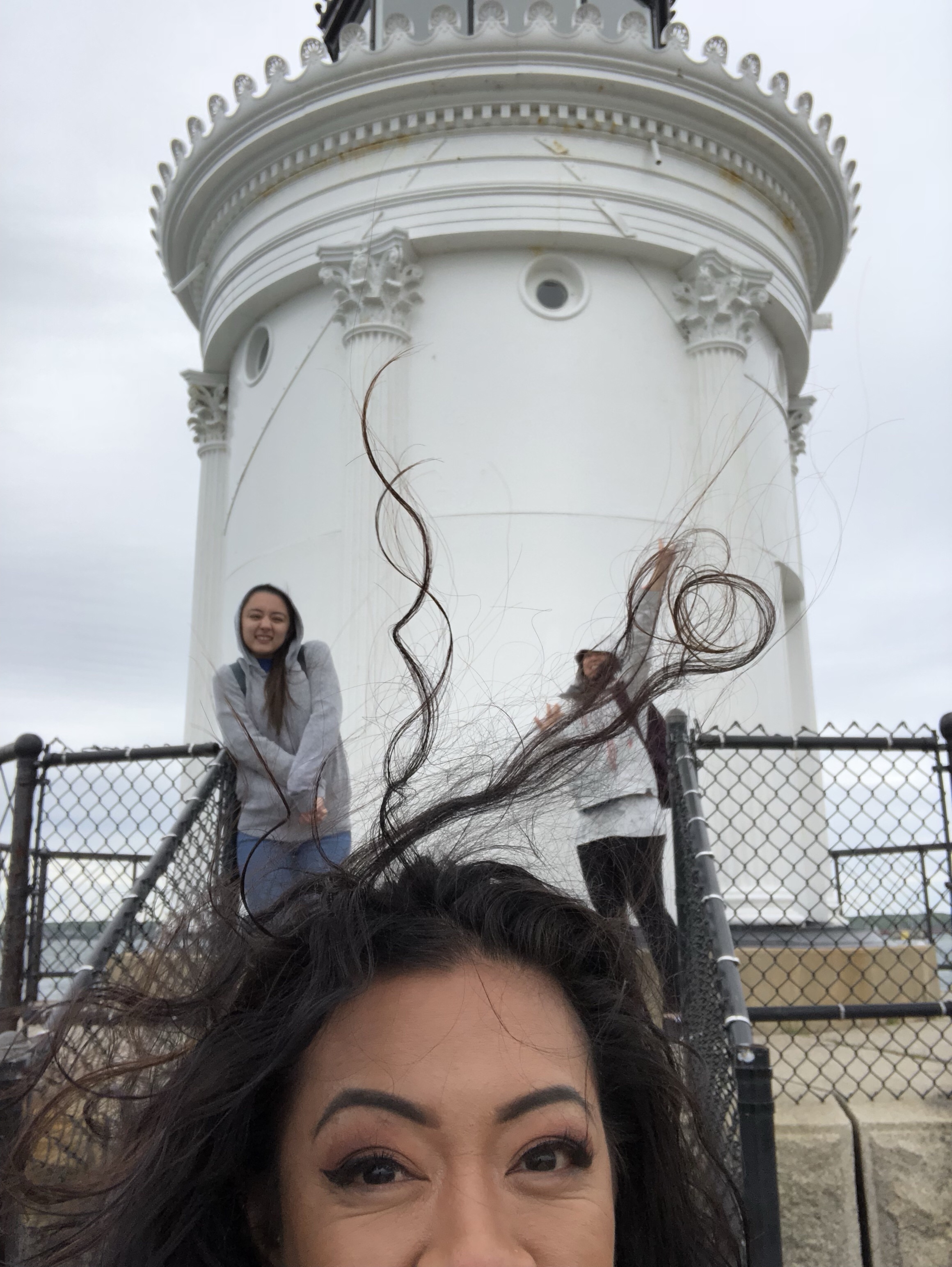 It was an interesting walk to the lighthouse strategically choosing each rock to avoid twisting an ankle, but we all did it. In the 50 degree windy weather..where it was cold..and my hair was blowing all over the place..and gloomy…and cold…holding onto my phone for dear life, praying the handle on my phone doesn’t all of a sudden break off…