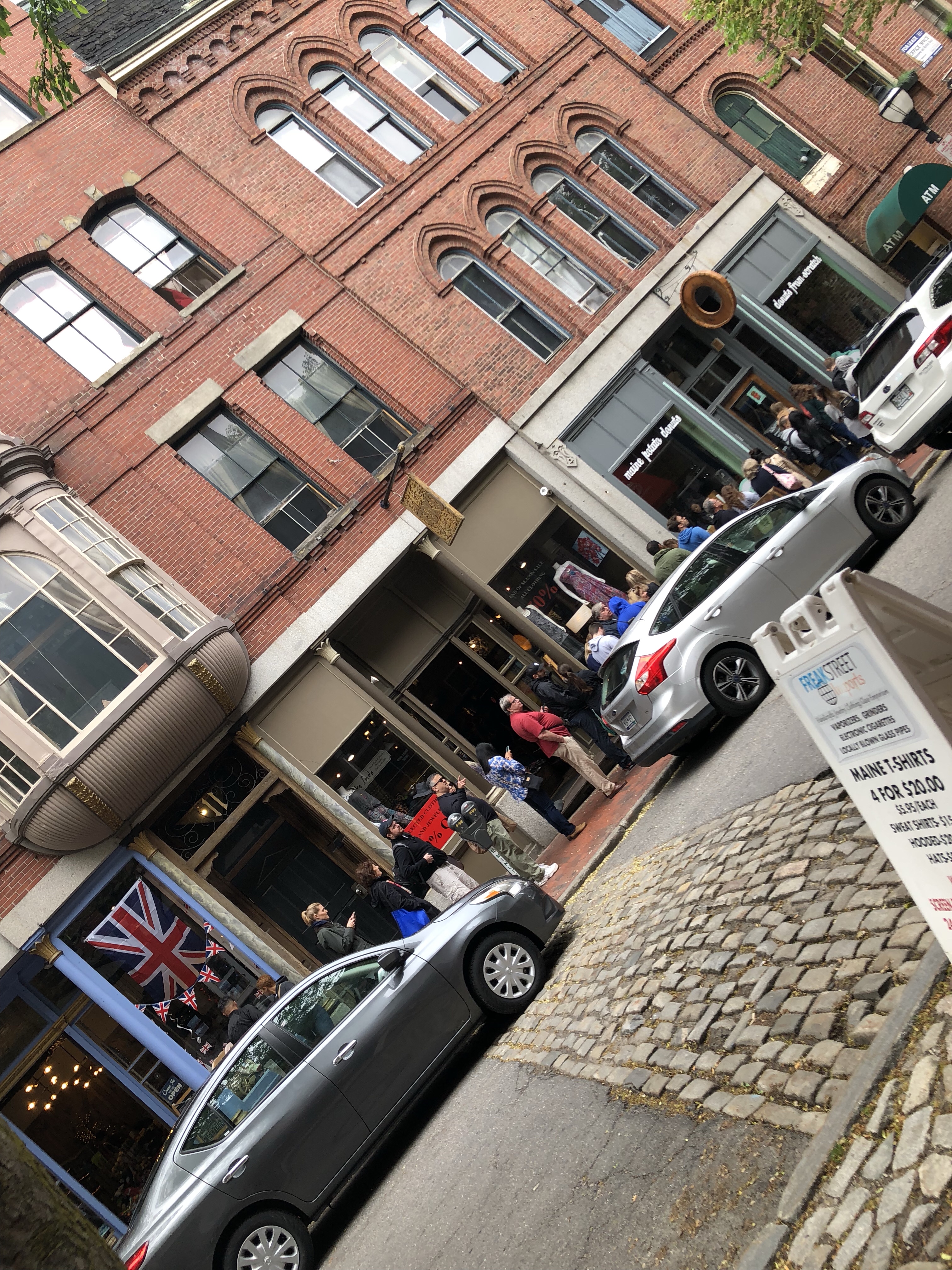 We walked back to the car to eat our donuts cuz the store was packed, and now a line up the street.