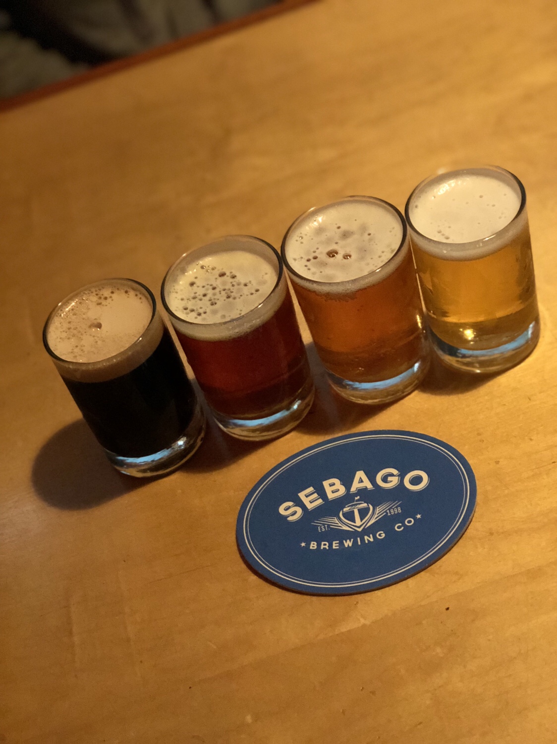 Mine was on left with #2 Summer Ale-good, #9 Deep Devil Brown Ale-my fav, #1 Nitro stout-very light and good, #6 Export Golden Ale-2nd favorite…