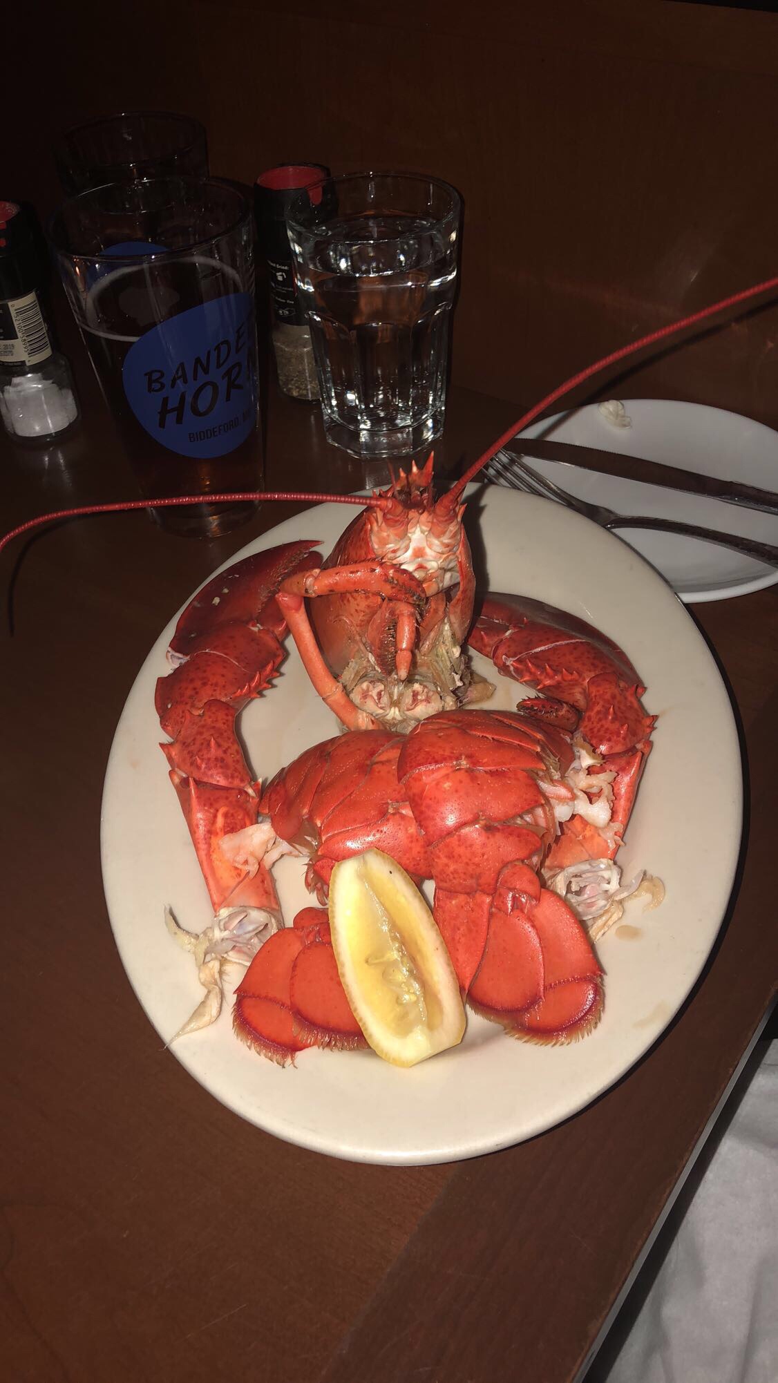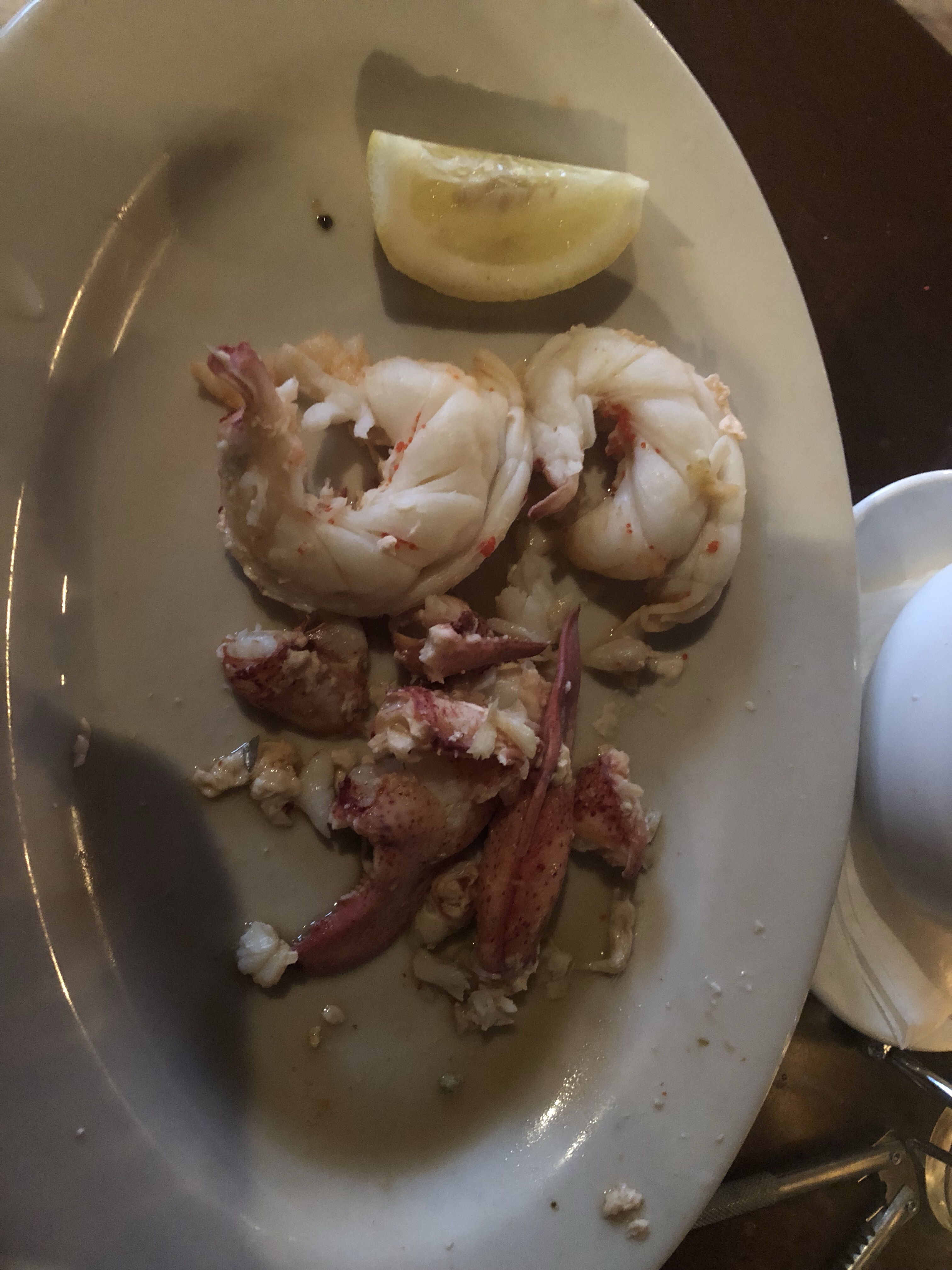 Well since we’re in Maine, it was only appropriate to each order lobster. We opted for the smallest ones at 1.25 lbs