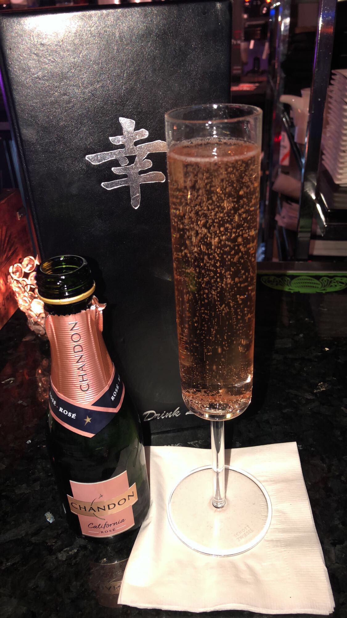 Eddie and I sat at the bar waiting for our table to be ready, and for our friends to arrive…I love their bubbly glasses