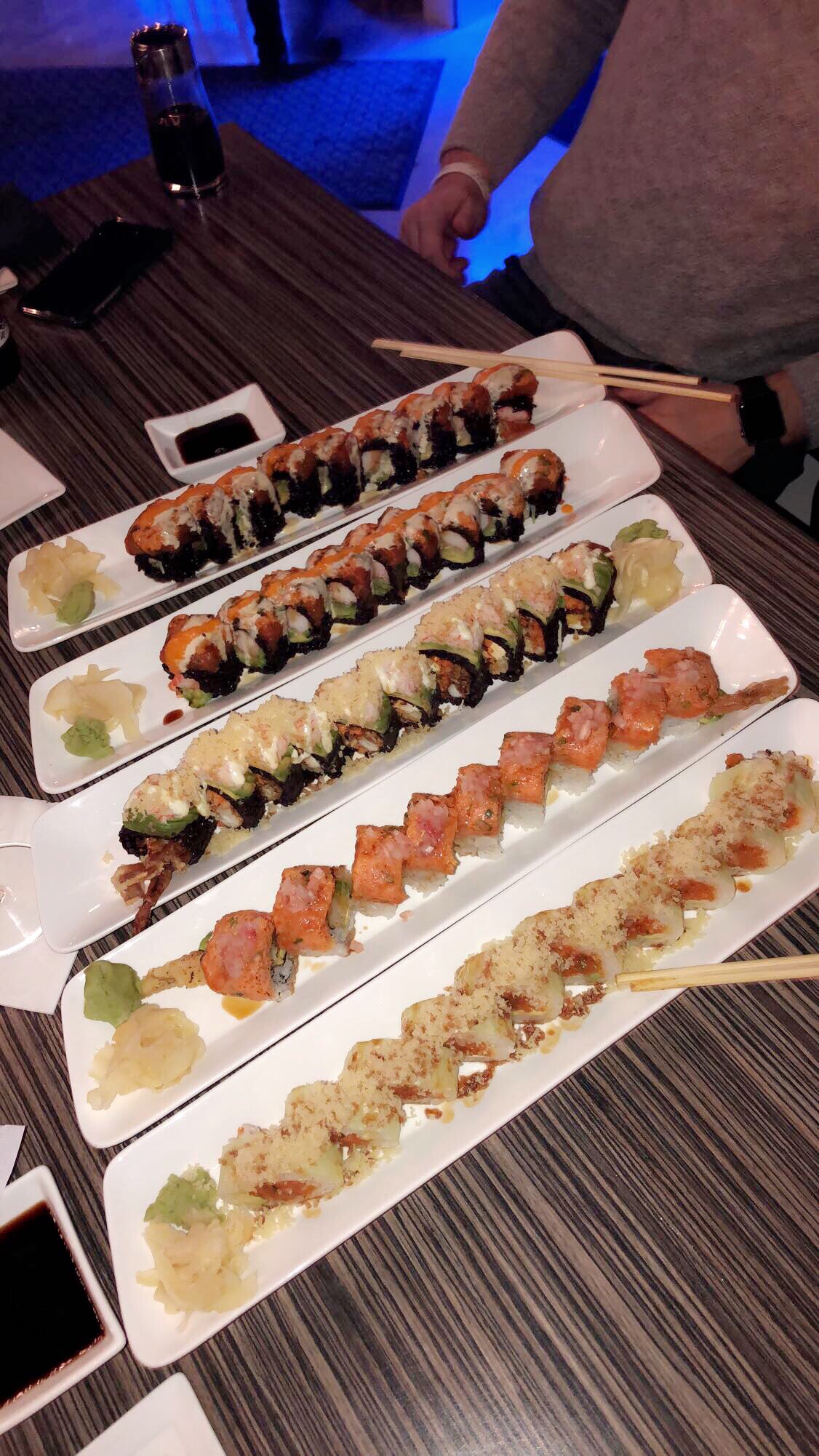 I must say…the black rice is a favorite of mine! All of these rolls were so good and very easy to eat…all I can say is one of these is the spider roll with black rice, can’t really tell you which one it is-it may be the one in the middle.