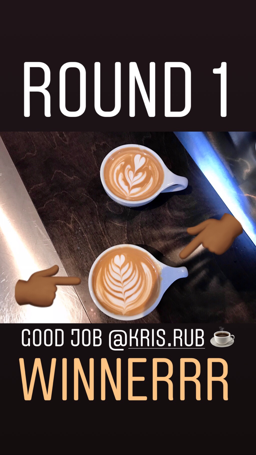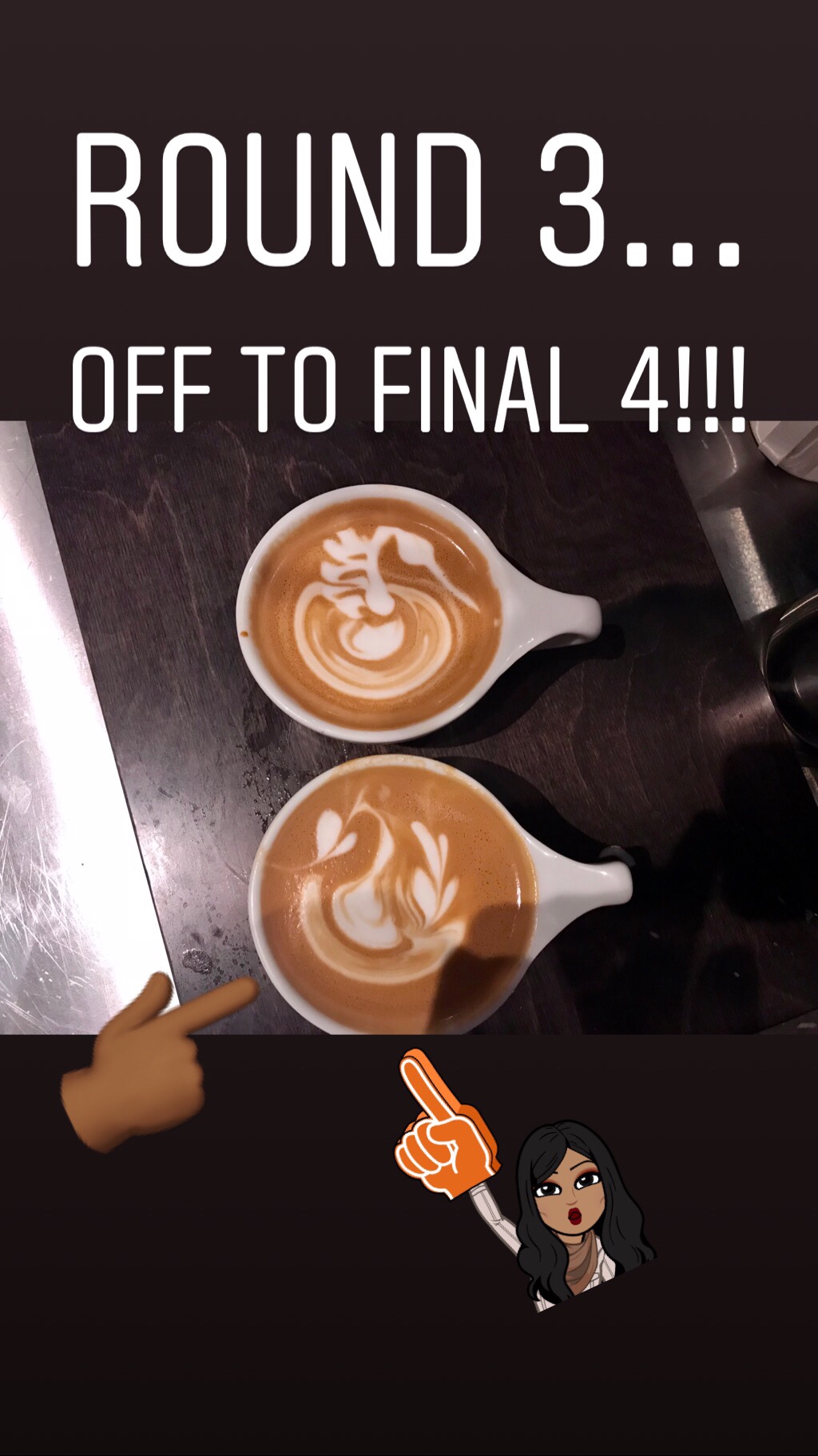 Ok, so we are all so excited and off to round 4! Anddddd now we are headed to the final 2!!!!!! Bottom one below is his winning latte art…